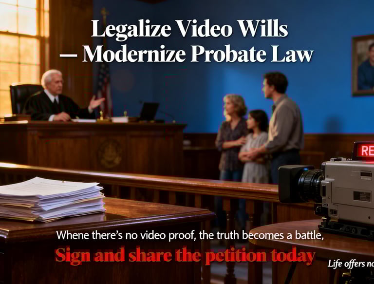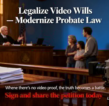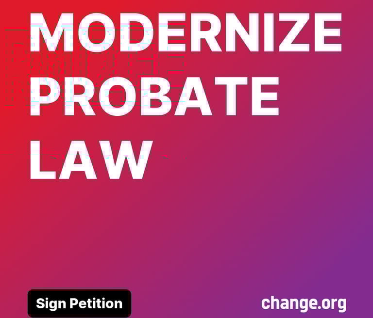 Modernize Probate Law is a grassroots movement started by families who have lived through the pain of losing loved ones and then fighting an outdated probate system. We exist to protect your voice, your children’s well‑being, and your memories from being lost in a maze of delays, confusion, and loopholes that others can abuse.
